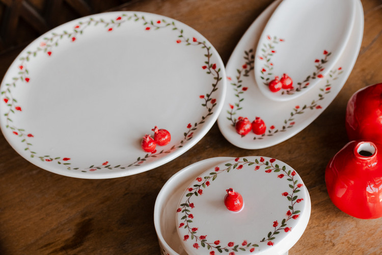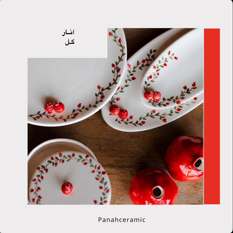 سرویس ۶ پارچه پذیرایی سرامیکی یلدایی طرح انارگل | مناسب شب یلدا، پذیرایی و دکور(پس کرایه)