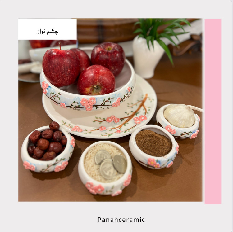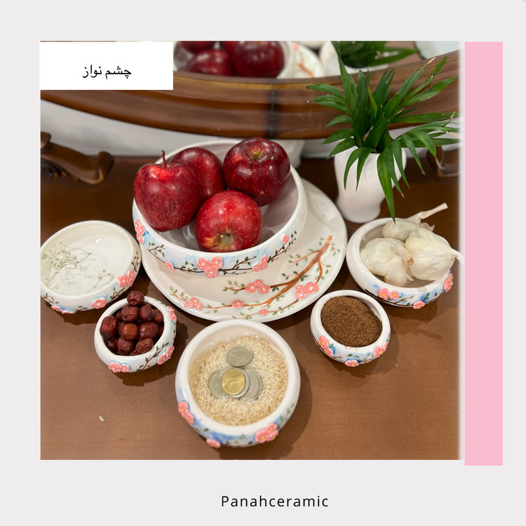 هفتسین دستساز سرامیکی «چشمنواز 1405» | بشقاب + کاسه متوسط + ۵ کاسه کوچک ۷ سانتی متری(پس کرایه)
