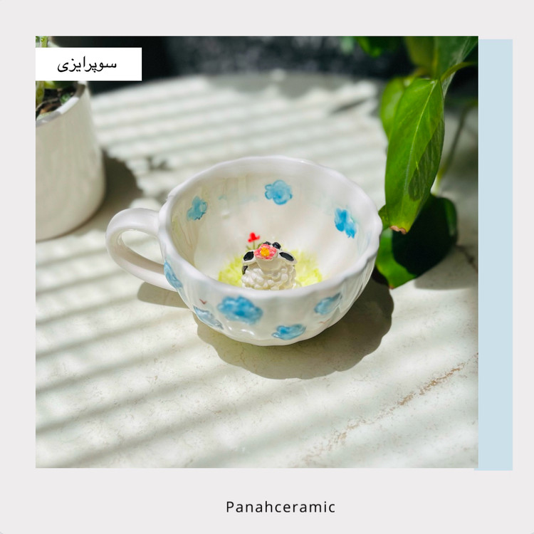 فنجان عروسکی سرامیکی دست‌ساز طرح ببعی | هدیه‌ای خاص و کاربرد(پس کرایه)