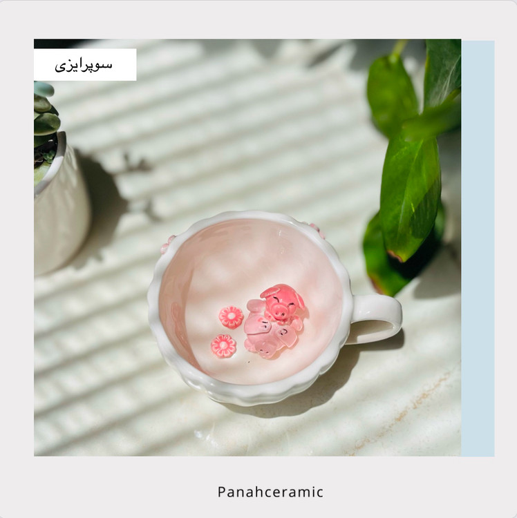 فنجان عروسکی سرامیکی دست‌ساز طرح پیگی | هدیه‌ای خاص و کاربردی(پس کرایه)