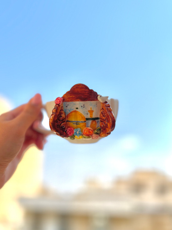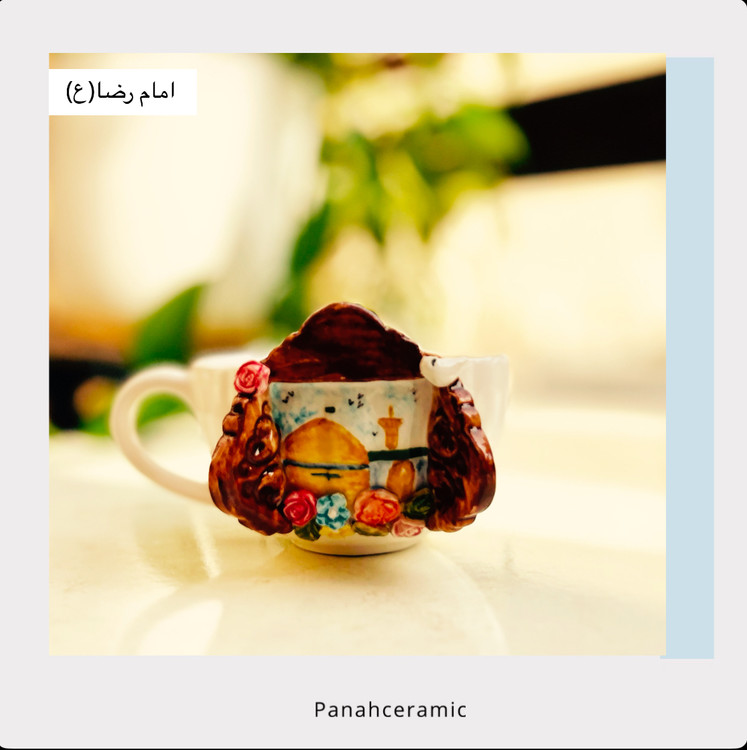 فنجان سرامیکی دست‌ساز طرح گنبد حرم امام رضا (ع) | هدیه مذهبی و خاص(پس کرایه)