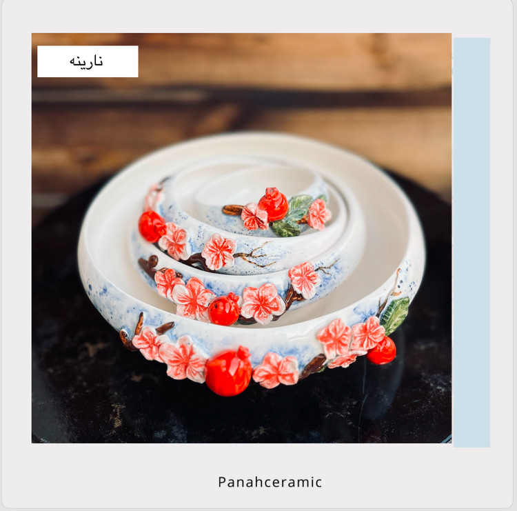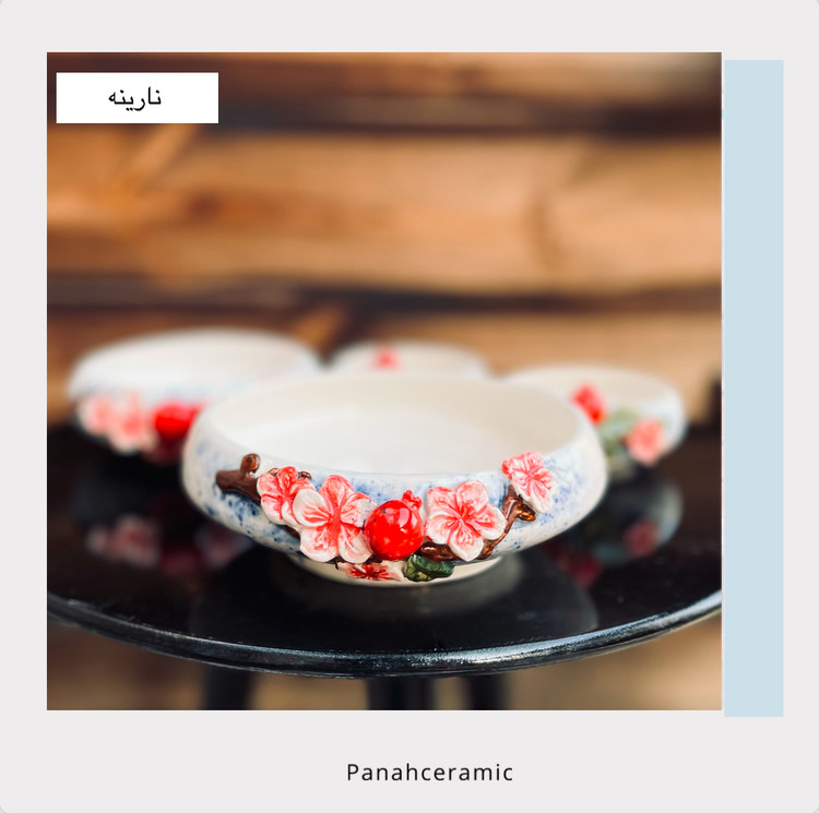 کاسه سرامیکی دستساز نارینه قطر 16 | طرح شکوفه و انار | مناسب یلدا، پذیرایی و دکور(پس کرایه)