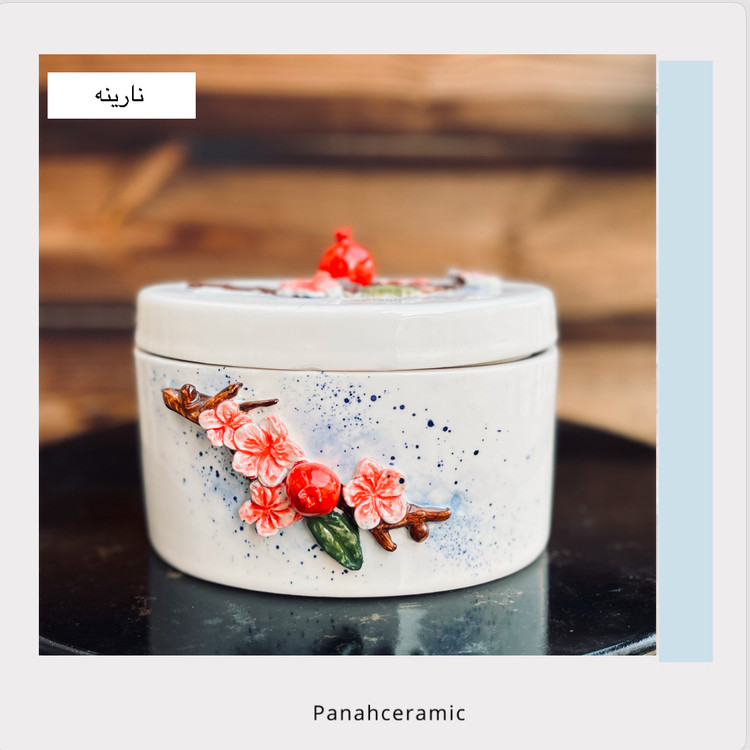 شکلاتخوری سرامیکی دستساز نارینه با طراحی چشمنواز الهامگرفته از شکوفههای بهاری و انار سرخ، انتخابی زیبا و کاربردی برای پذیرایی و دکور خانه است. این شکلاتخوری با لعاب براق و فرم هنری خود، جلوهای خاص به میز پذیرایی، سفره شب یلدا و مناسبتهای خانوادگی میبخشد.