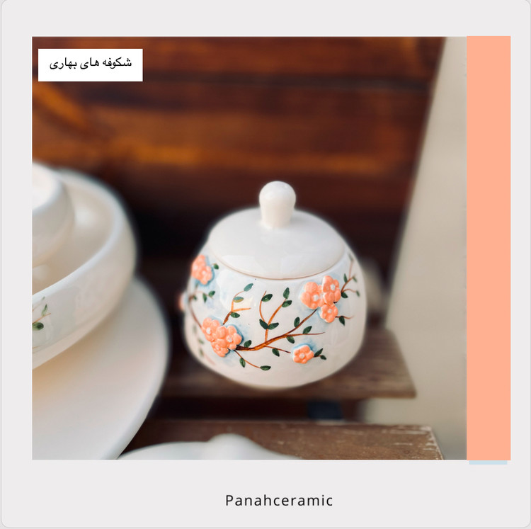 قندان سرامیکی دست‌ساز شکوفه‌های بهاری | طرح گل‌های بهاری | مناسب سرو چای، پذیرایی و دکور(پس کرایه)