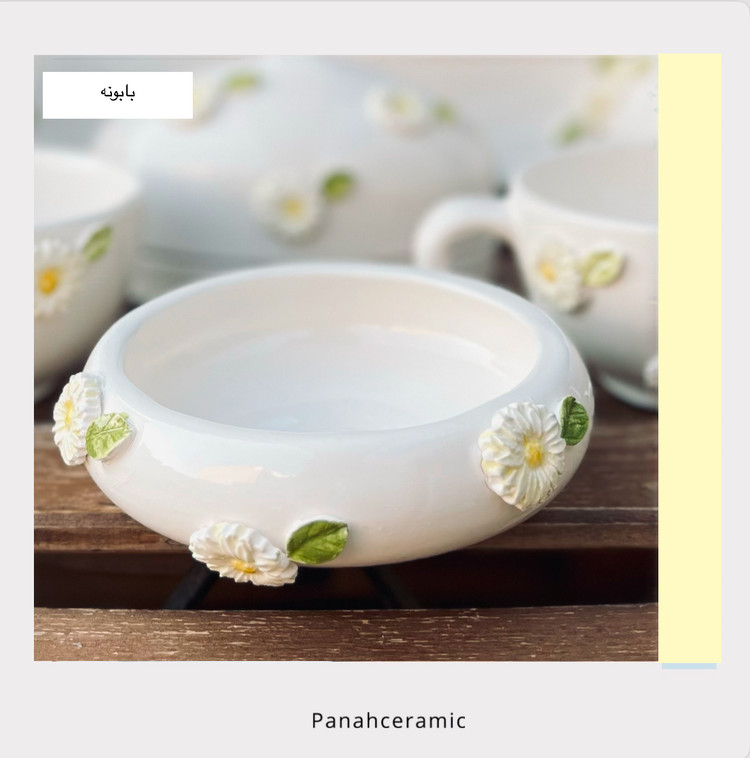 کاسه سرامیکی دست‌ساز بابونه ۱۲ سانتی | طرح گل بابونه | مناسب پذیرایی و دکور(پس کرایه)