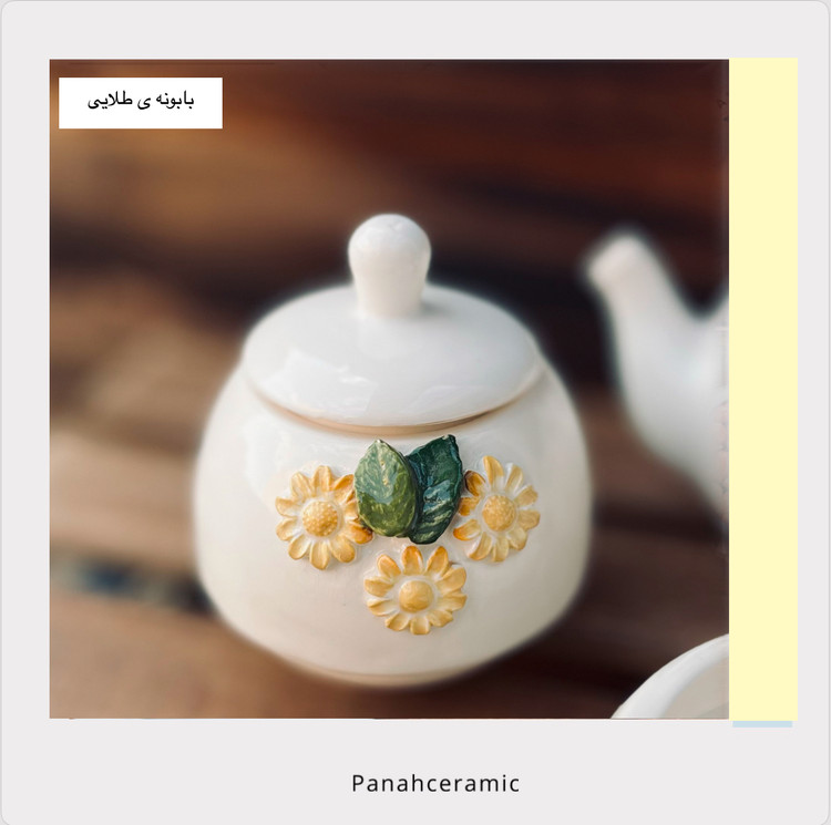 قندان سرامیکی دست‌ساز بابونه | طرح گل بابونه طلایی | مناسب سرو چای و پذیرایی هدیه(پس کرایه)