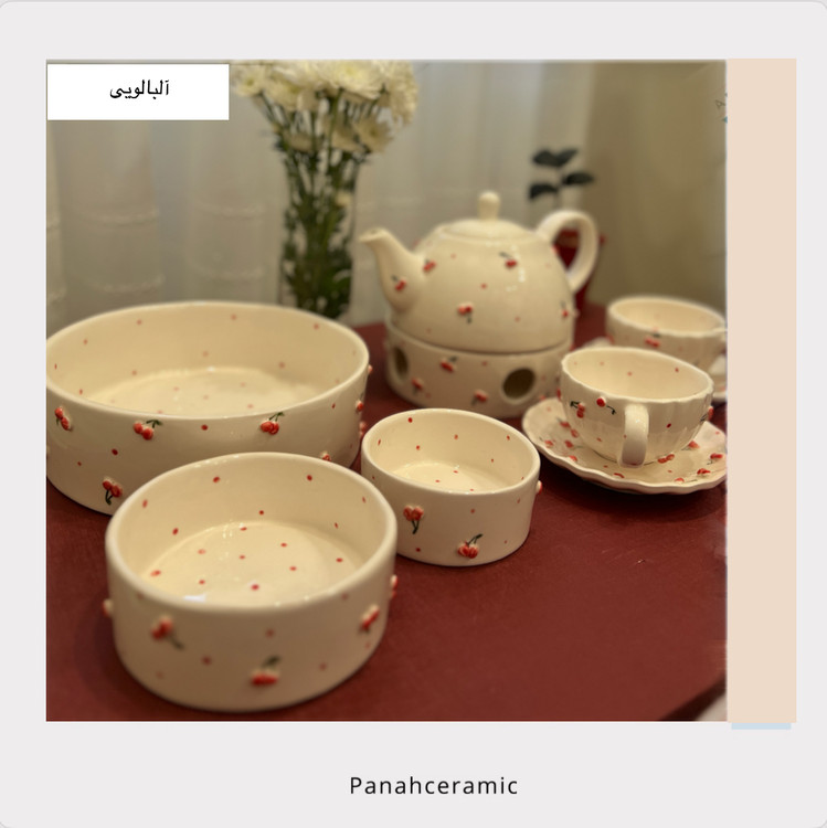 کاسه سرامیکی دست‌ساز طرح آلبالویی قطر ۲۲ سانت | خرید نقدی و اقساطی(پس کرایه)