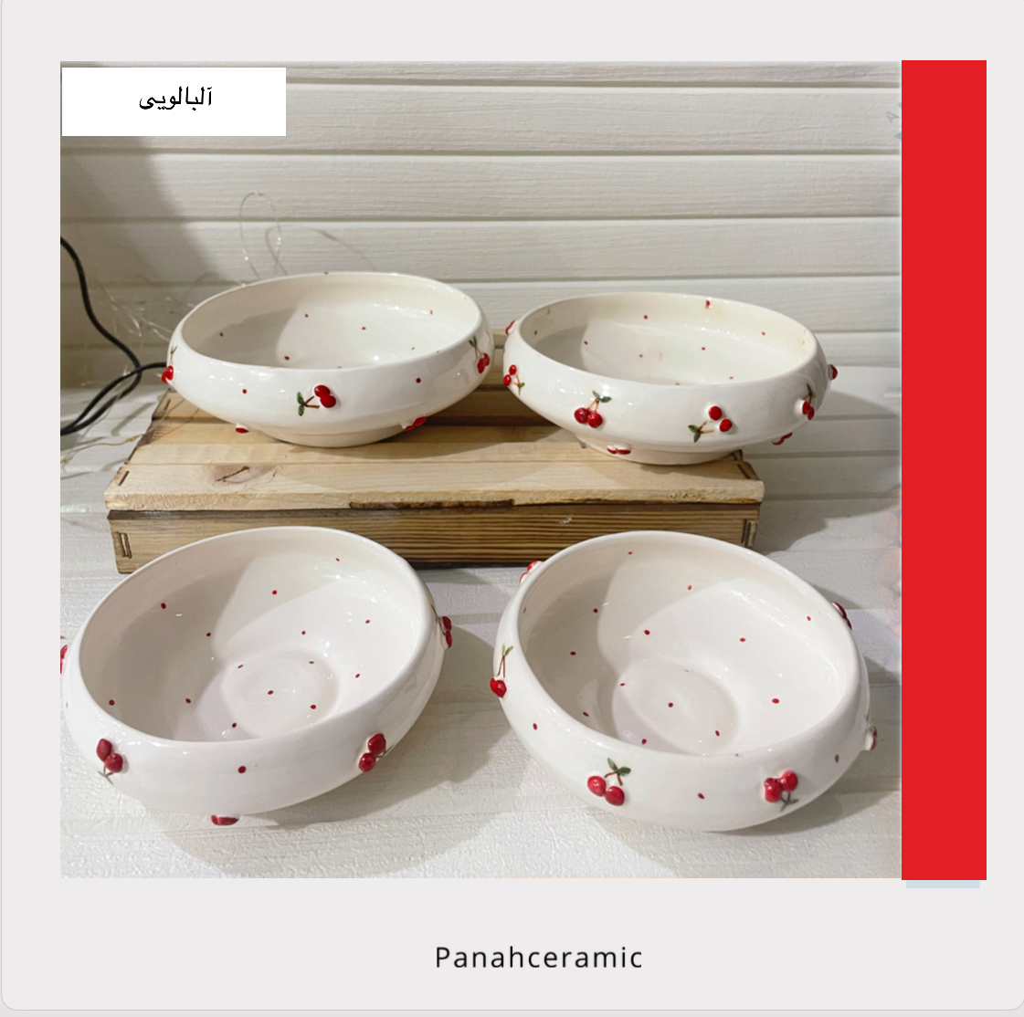کاسه سرامیکی دست‌ساز طرح آلبالویی قطر ۲۲ سانت | خرید نقدی و اقساطی(پس کرایه)