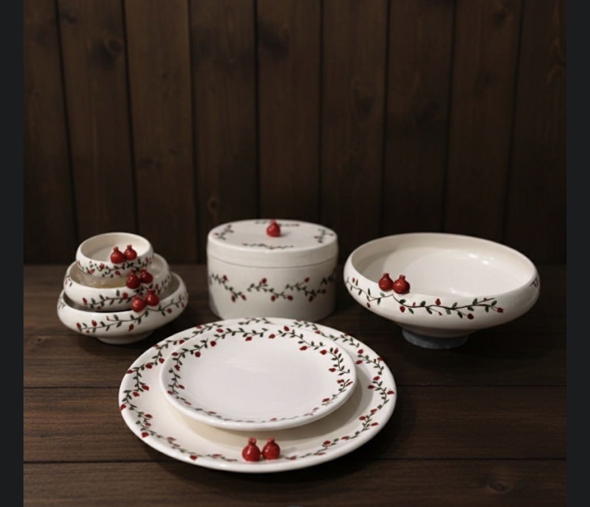 پیش دستی سرامیکی دست‌ساز طرح انار | خرید نقدی و اقساطی پذیرایی یلدا(پس کرایه)