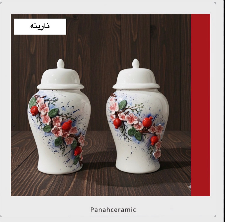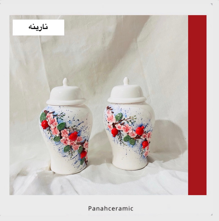 جار سرامیکی دستساز گل برجسته نارینه | مناسب دکور، نگهداری و هدیه خاص