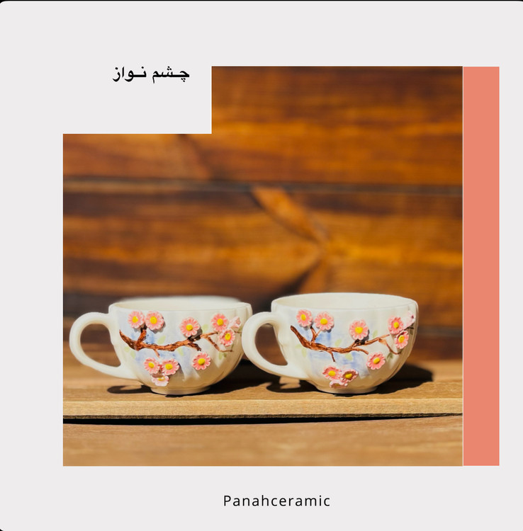 فنجان دستساز سرامیکی طرح شکوفه های بهاری ز(پس کرایه)
