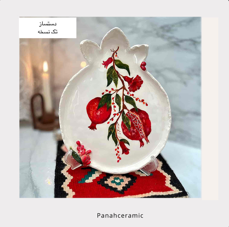 دیس سرامیکی دست‌ساز انار | مناسب پذیرایی، دکور و شب یلدا(پس کرایه)